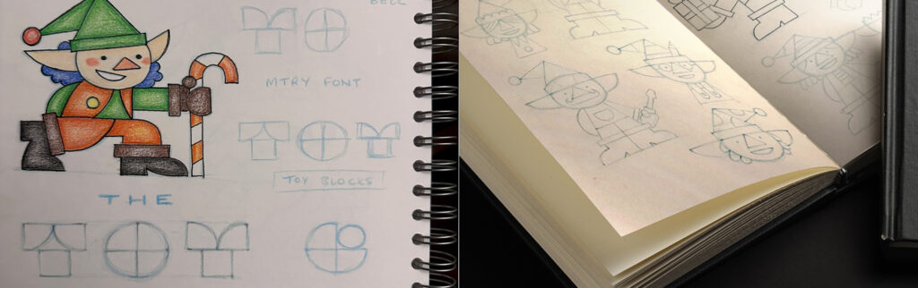 At the same time, I was sketching elf characters. Early on, I assumed they would play a central role in the branding. They seemed like the most direct way to communicate the mythology and the Christmas setting. That assumption didn’t last.