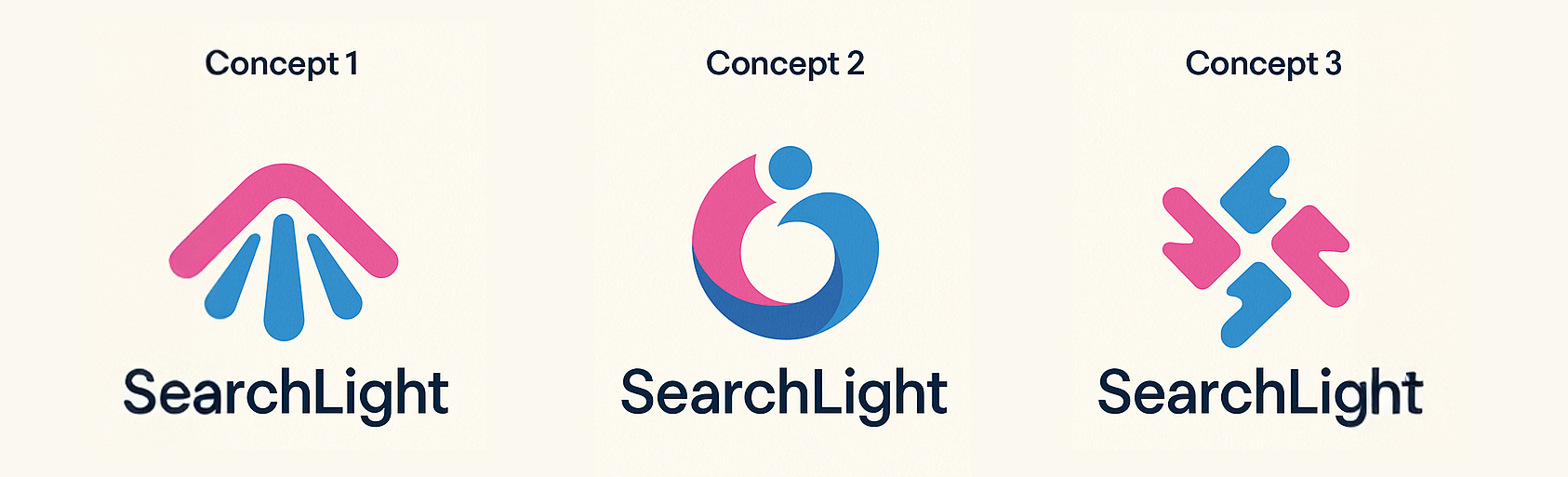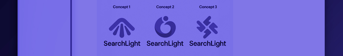 The three options for a SearchLight logo supplied by ChatGPT